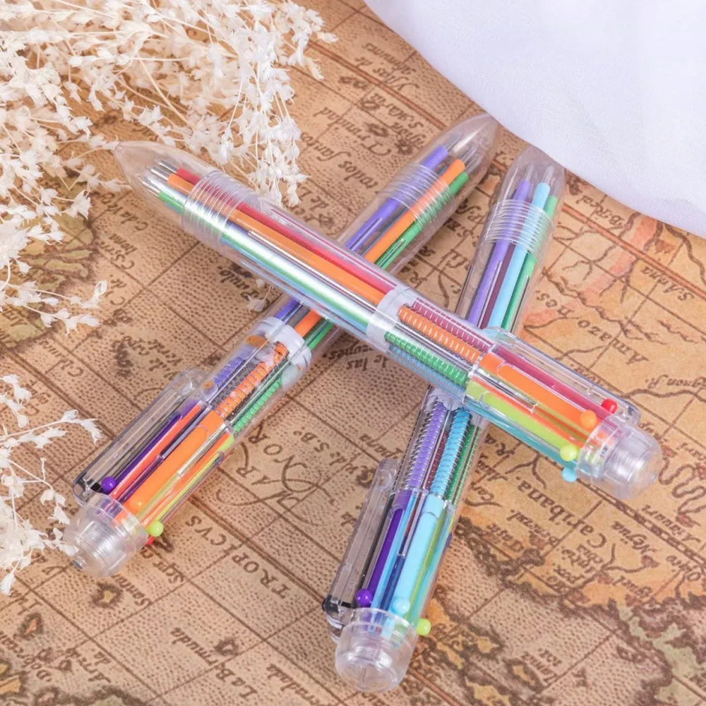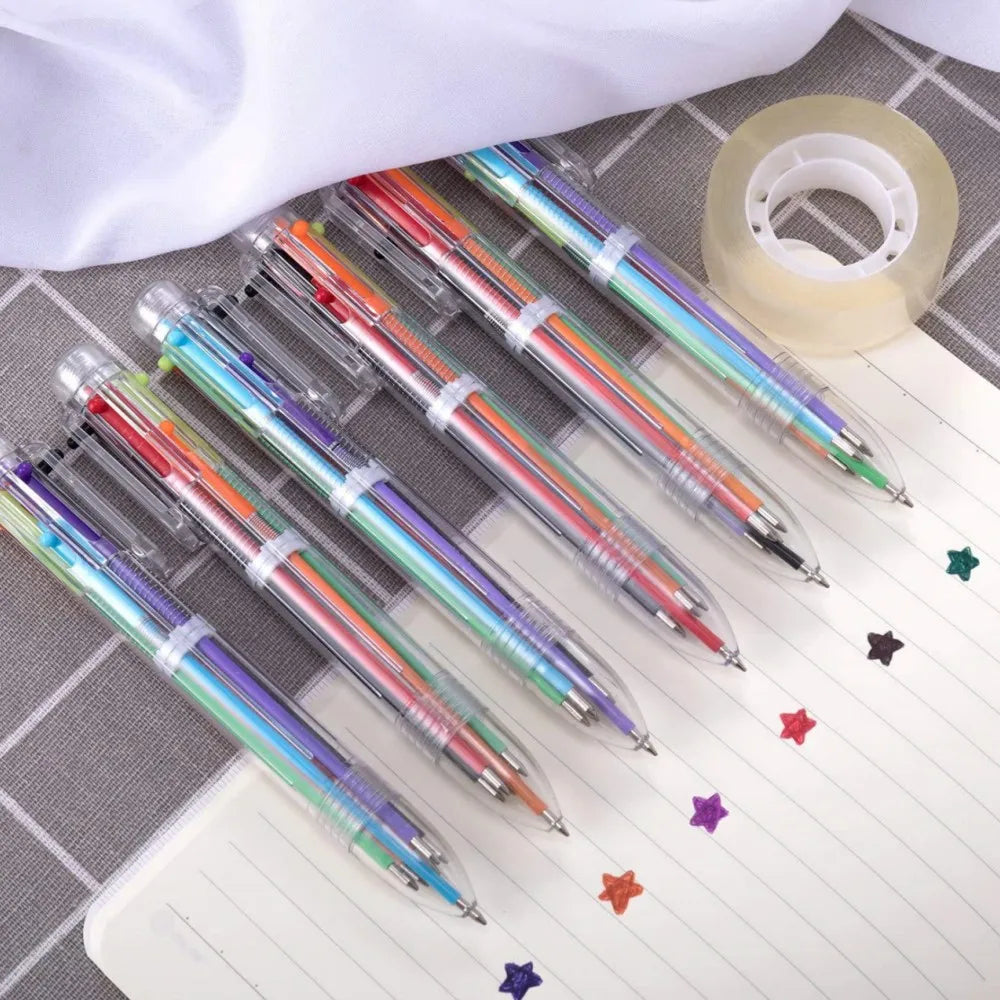 6pcs Ball Point Pen 0.7MM Korea Creative Stationery Pen 6 Color In 1 Ballpoint Pens for School Supplies Office