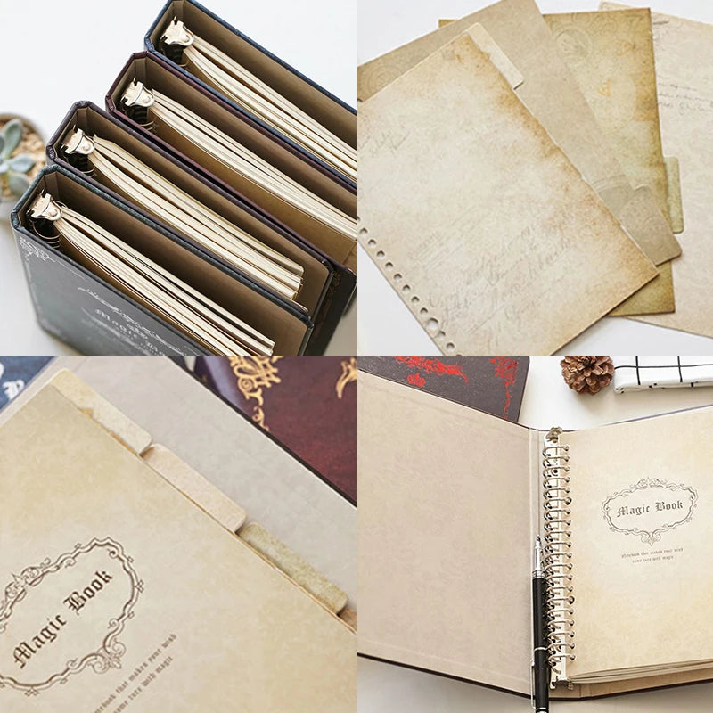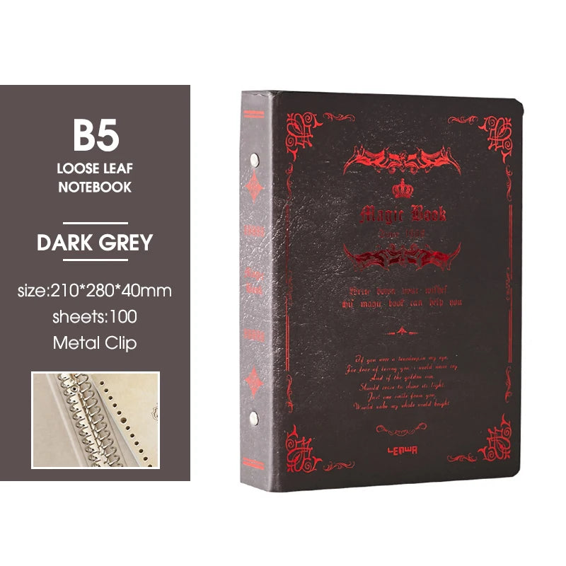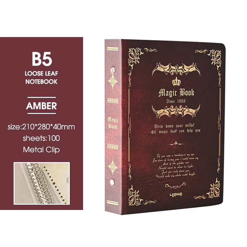 B5 Detachable Metal Clip Loose Leaf Retro Notebook 100Sheets Hardcover Magic Book Writing Diary Office Conference Study CS-021